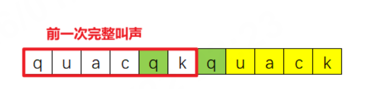 - 大雁发出的完整叫声为”quack“,因为有多只大雁同一时间嘎嘎作响,所以字符串中可能会混合多个”quack”。