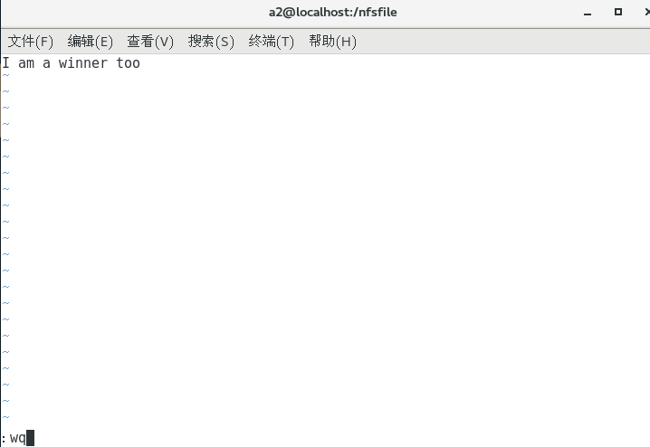 4.在 NFS 服务器端新建一个文件 aaa,写入I am a winner(也随意写入内容)