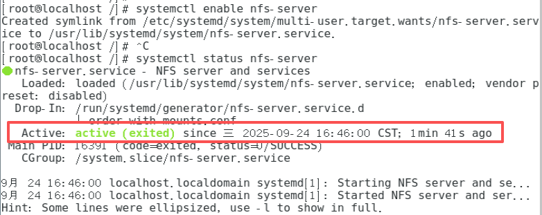 [root@localhost /]# systemctl start nfs-server