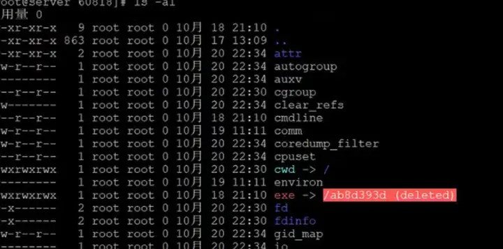 进入挖矿进程的PID目录下,可看出该进程的运行信息。