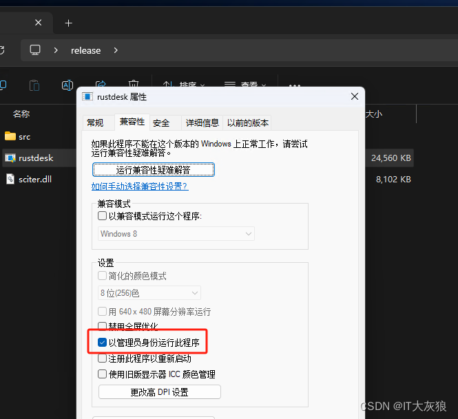 不知道为什么要拷贝src目录。如果没有报错,到此编译就成功了。用 cargo run --release 命令会做一些优化,升成的rustdesk.exe 文件体积会缩下。如果要运行程序需要吧 src目录、rustdesk.exe 和 sciter.dll 拷贝在一起。相比官方的只有一个文件是要复杂些。