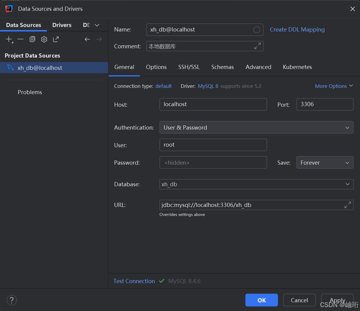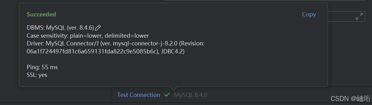 点掉弹窗后Test Connection后面会有个对钩,表示测试通过