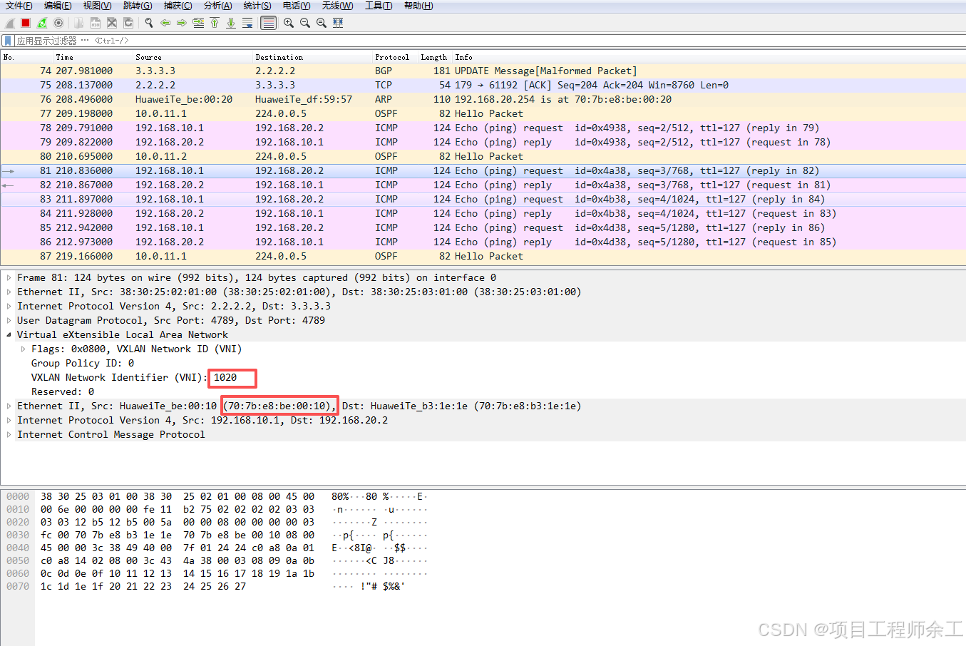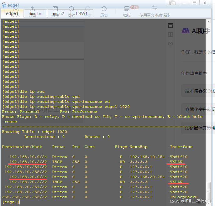 vxlan vni 1020 //三层vni 各设备都配一样就可以了