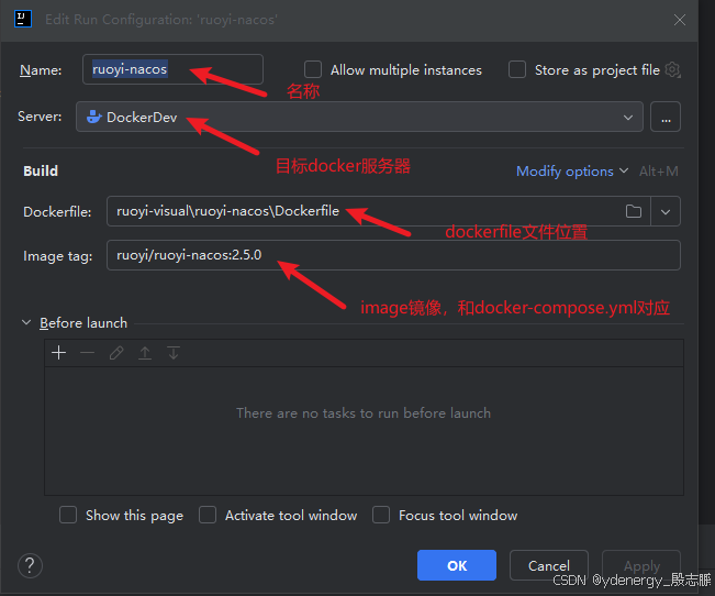 进行相应配置,注意Image tag要和docker-compose.yml中配置的image一致
