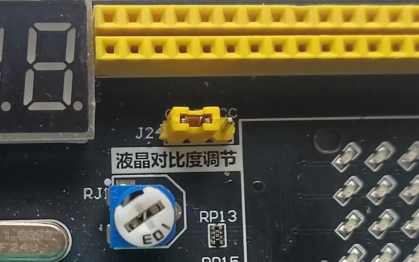 当液晶两端不给电压时,近似为透明(完全透光);当液晶两端给电压时,近似为黑灰(完全不透光),这种电压变化会引起液晶的透明度也就是亮度变化,因此很多单片机会在LCD1602旁边设置一个可调电阻,用于调整液晶两端电压,从而控制液晶对比度。