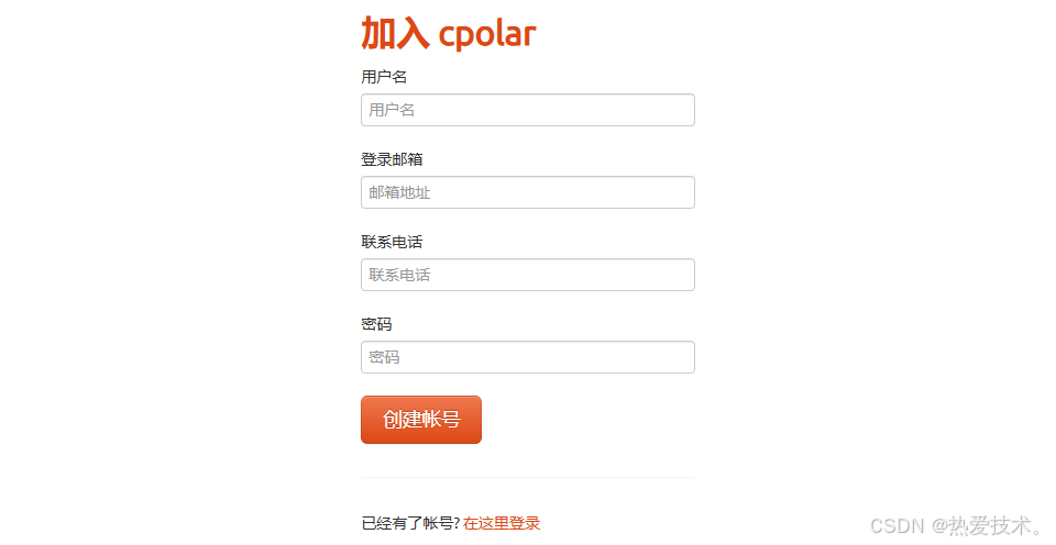 将前面步骤注册好的cpolar账号登录即可进入后台页面