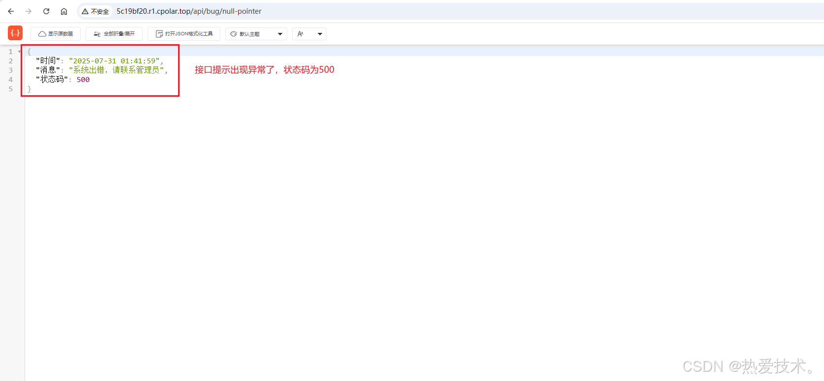 <您的8080端口穿透地址>/api/bug/null-pointer #如:http://5c19bf20.r1.cpolar.top/api/bug/null-pointer