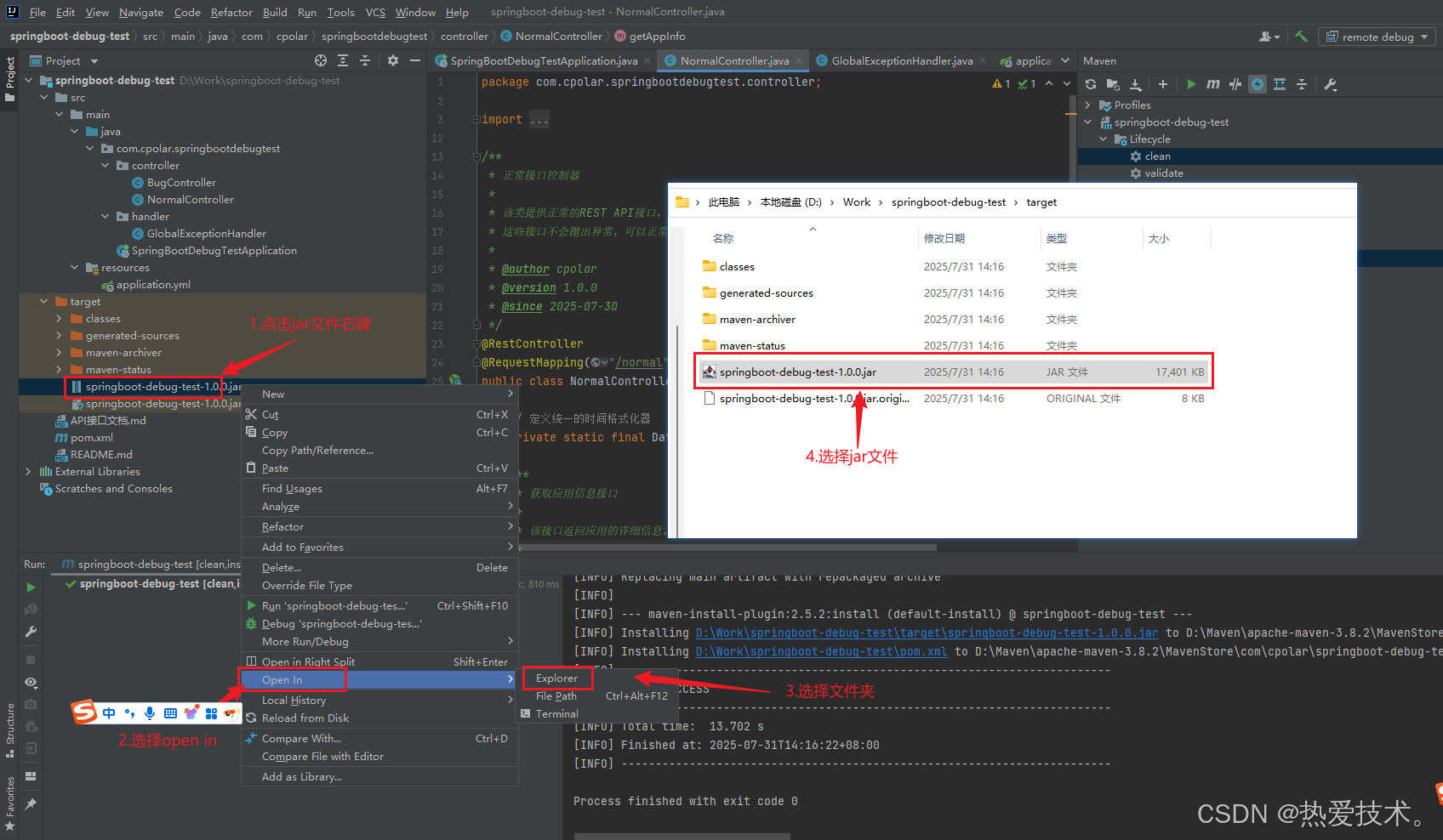 依次步骤打开找到jar文件`springboot-debug-test-1.0.0.jar`