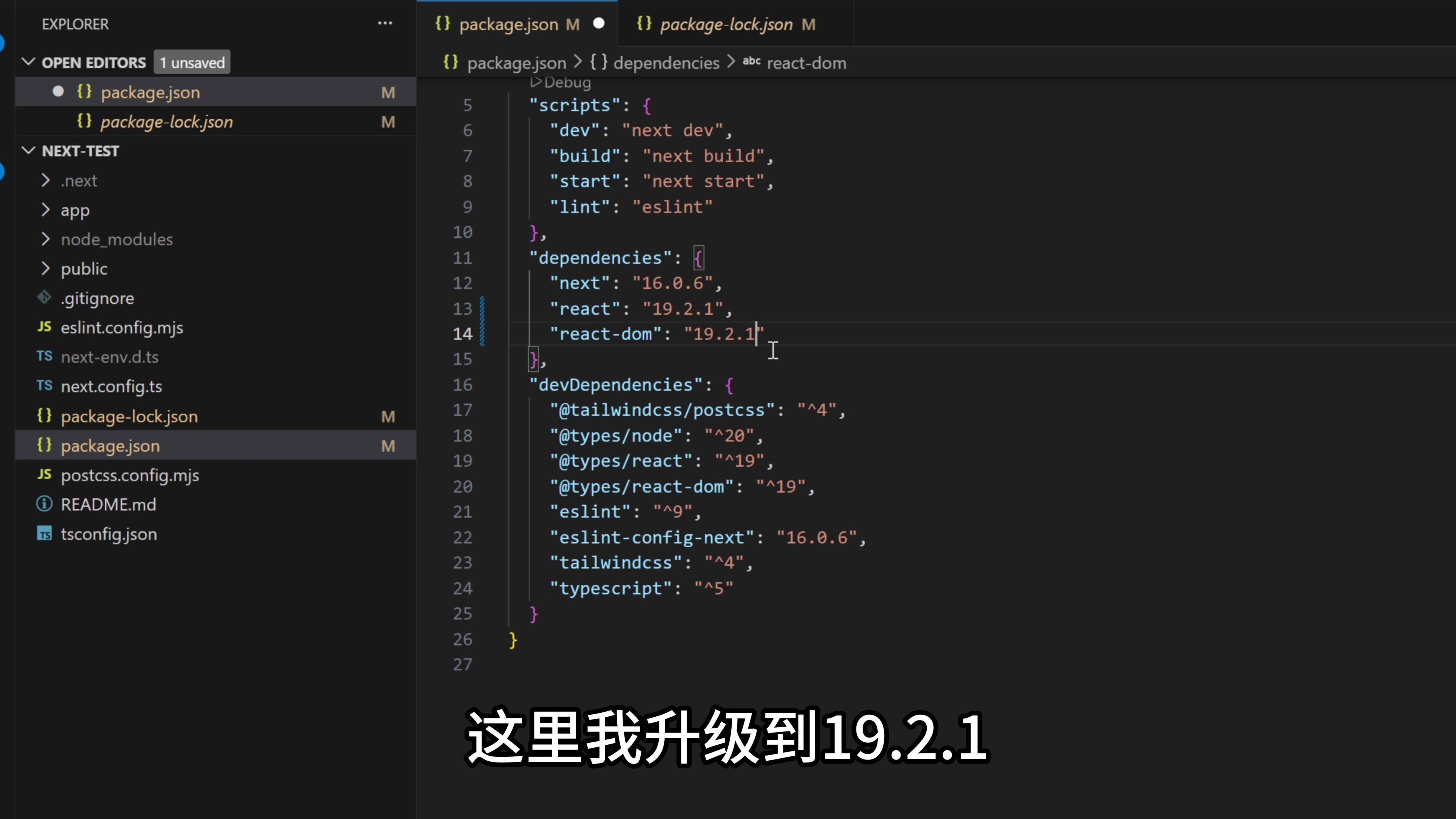然后下面对于 Next.js 用户来说,16 版本应该升级到 16.0.7。这里我把版本号改成 16.0.7。