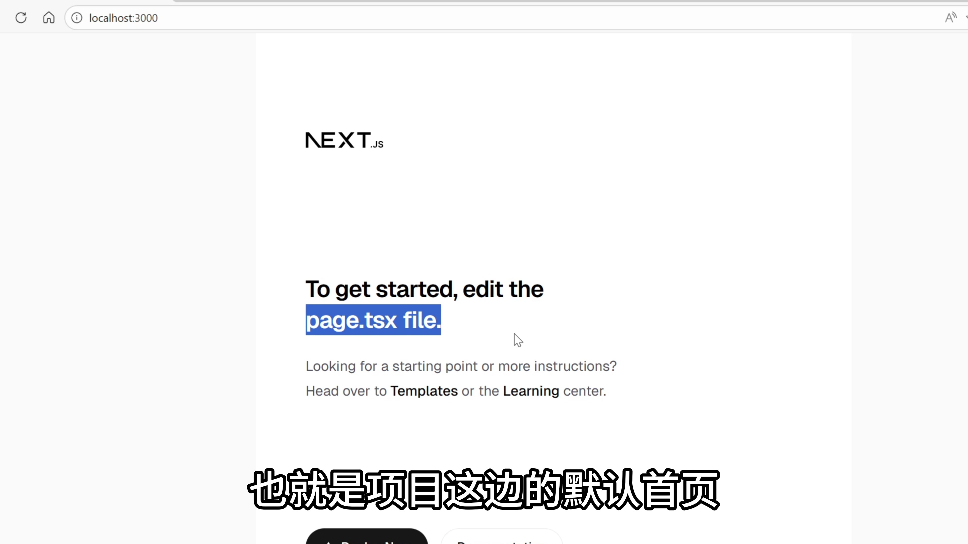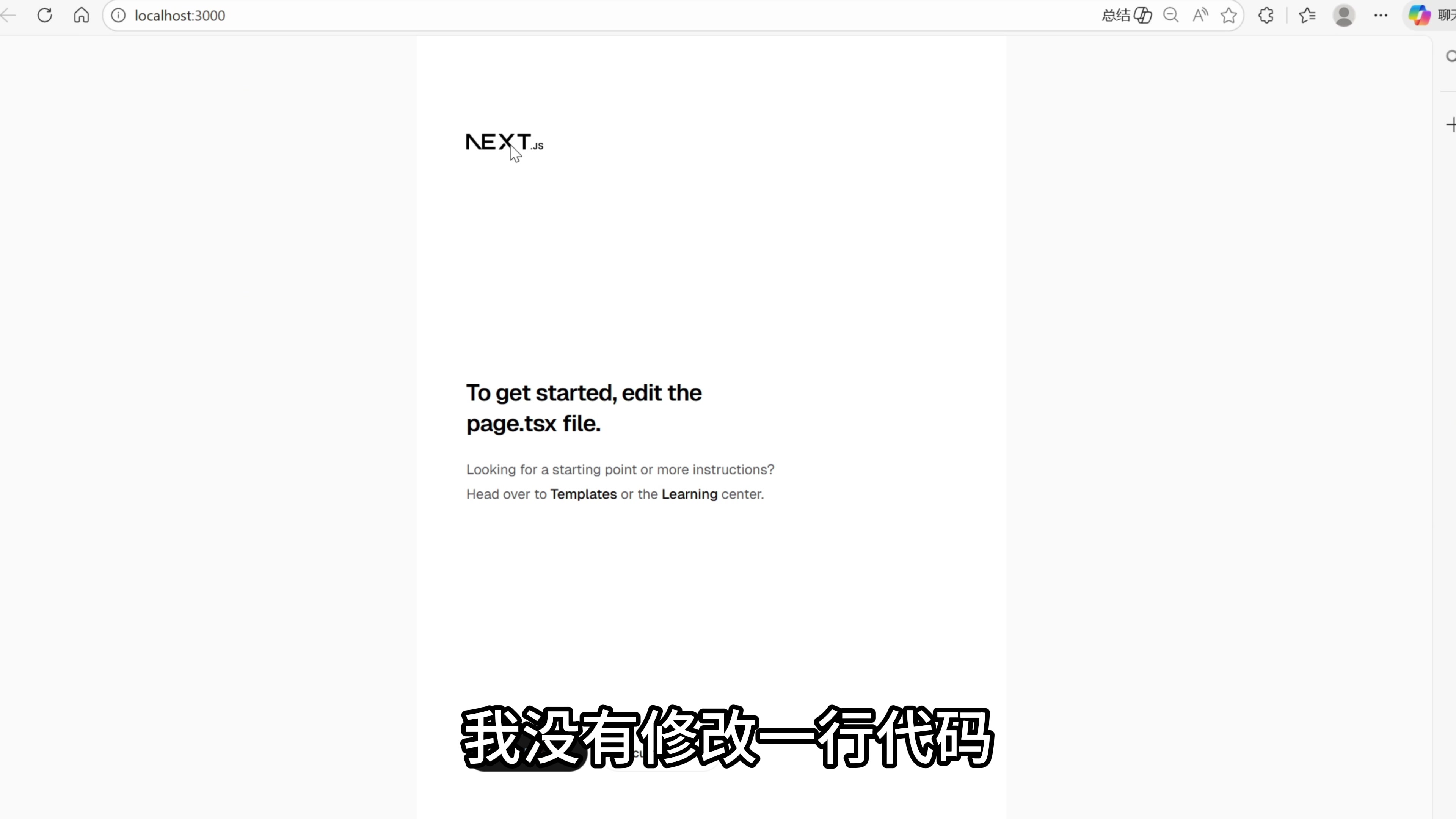 这里有一个本地地址就可以访问到项目的主页。这是一个 Next.js 项目最初始的状态,我没有修改一行代码。