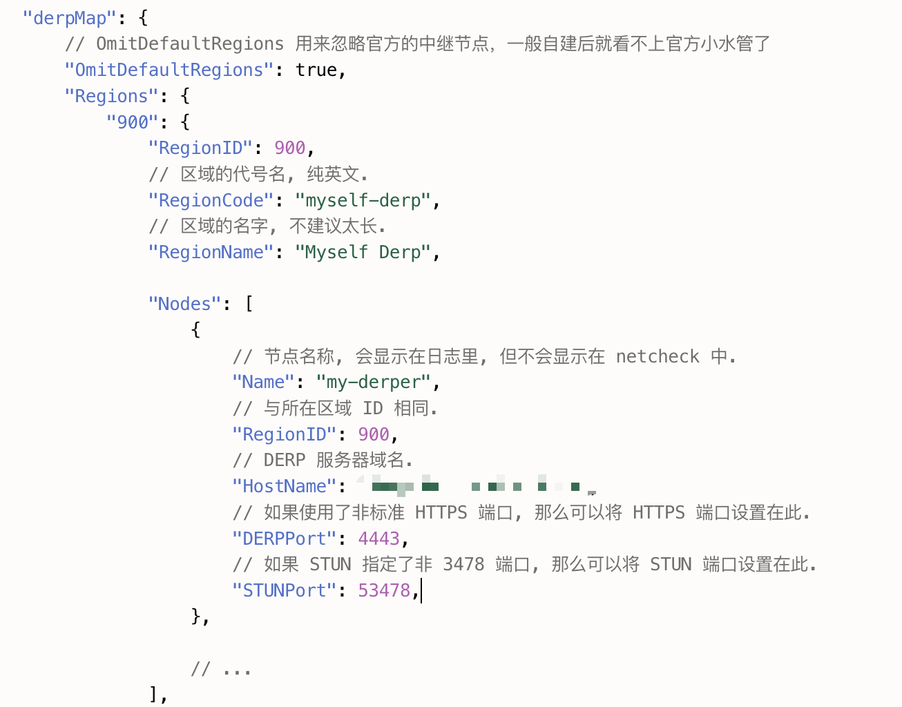 进入 Tailscale 管理面板 → Access Controls → derpMap, 添加自定义 DERP 节点: