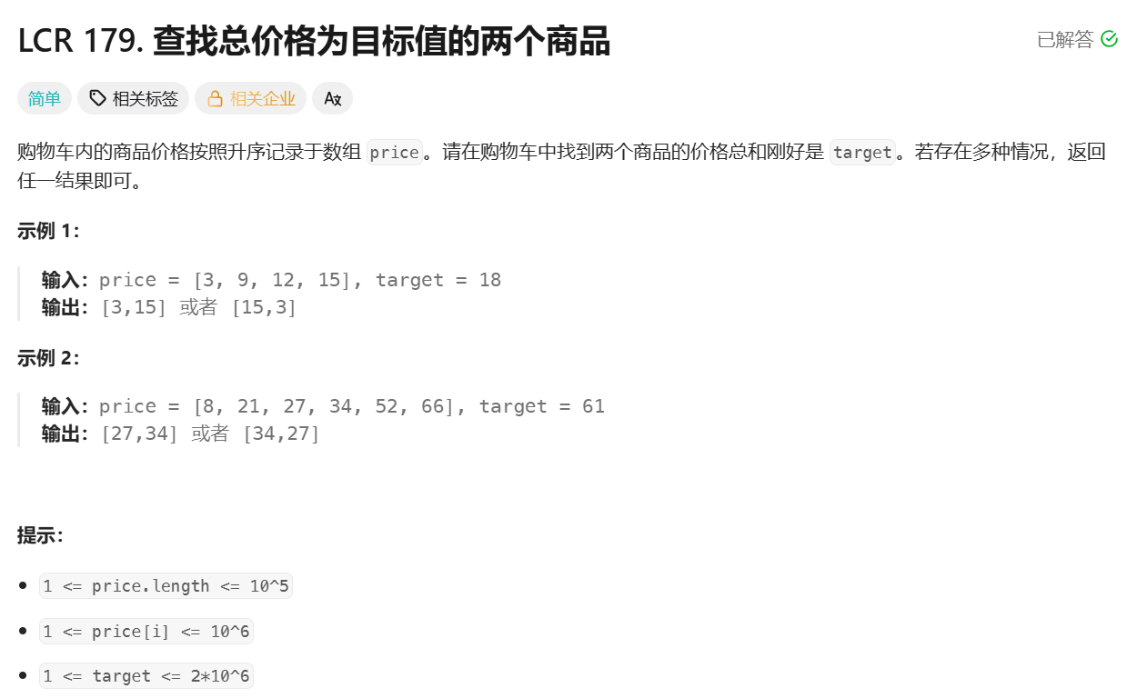 双指针:先定位一个元素,然后使用双指针遍历剩余数据找符合条件的值(这里类似于查找总价值为目标值的两个商品这道题)。