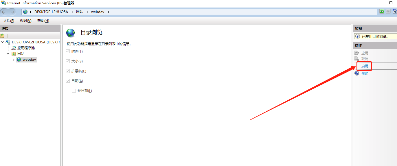 - 点击 右上角 "启用" 按钮,启用 “WebDAV” 目录浏览功能