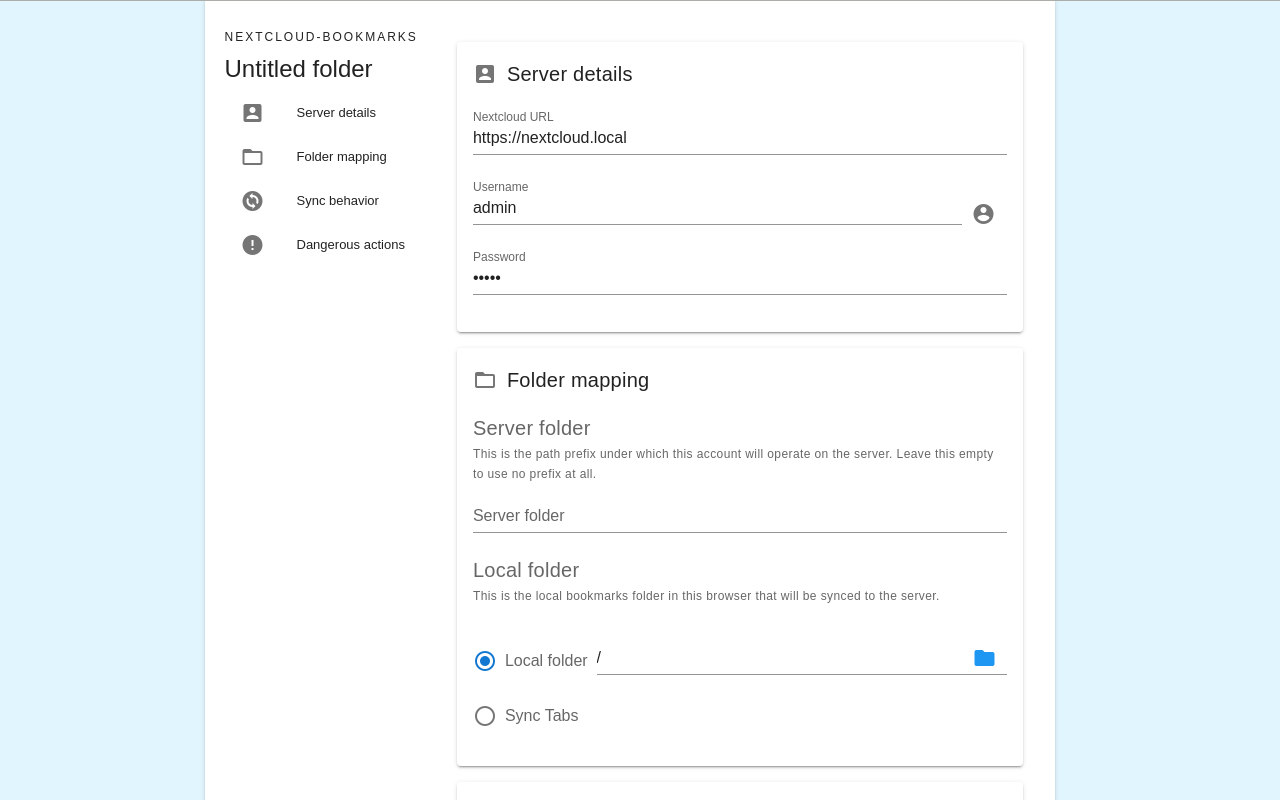 - Local folder:浏览器中的书签文件夹