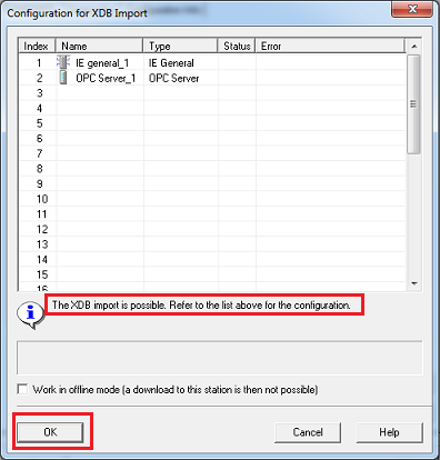 将生成的XDB文件导入至"Station Configurator"内,具体步骤见表3。