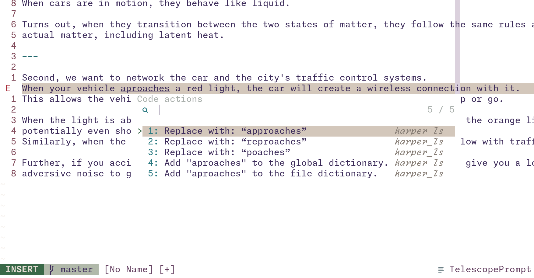 不仅仅是发现问题,Harper还会提供具体的修正方案,比如拼写错误的单词会给出正确的拼写建议。