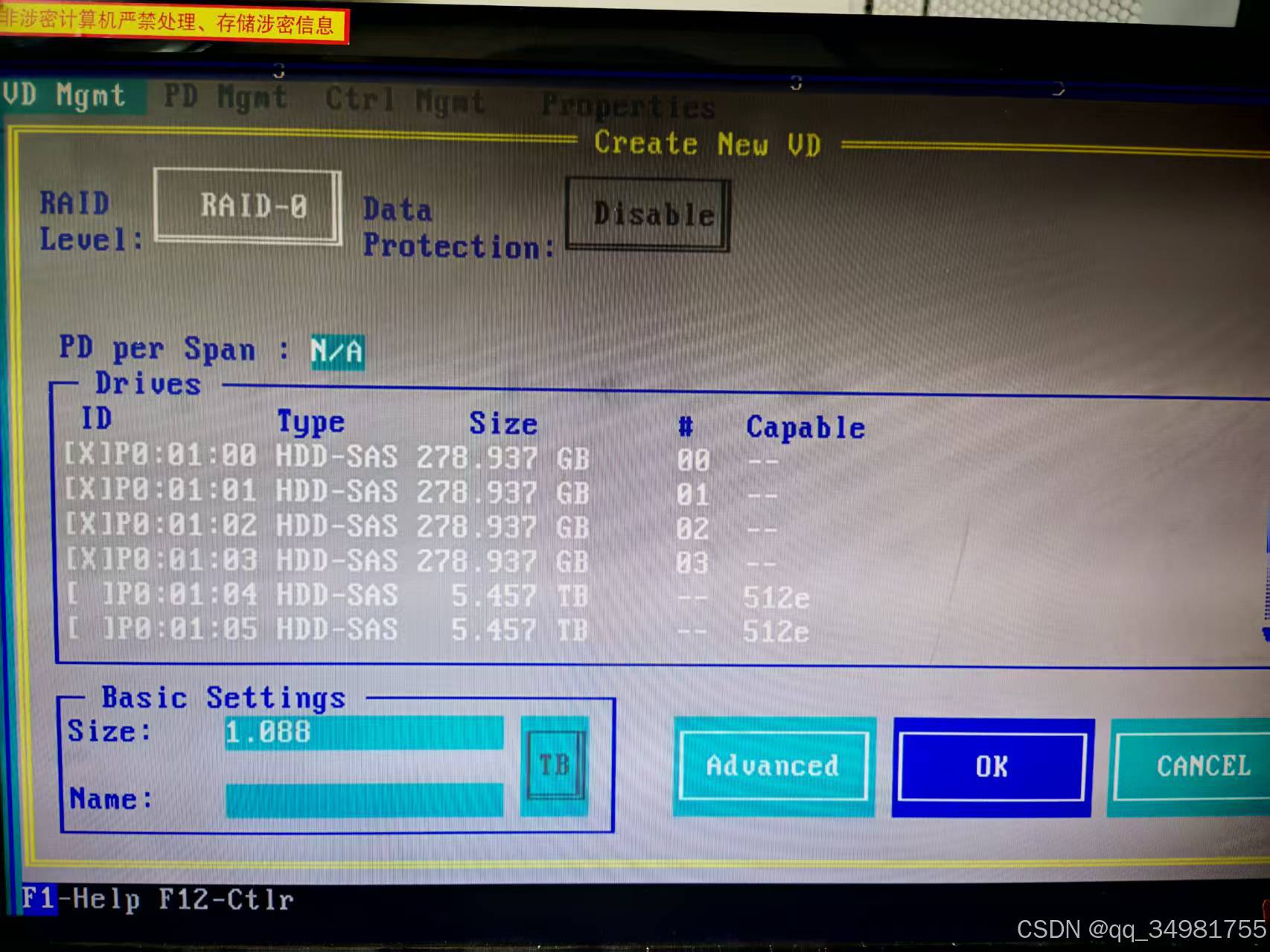 (3)设置raid-0 然后按空格选中 raid0 磁盘组是 前4块278.937GB (意思将这4块设置成一组)