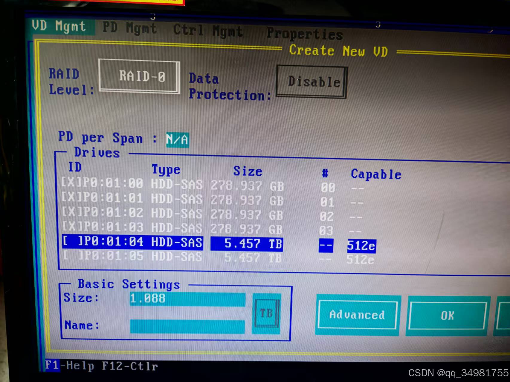 (2)然后继续F2 选中Create Virtual Driver 创建磁盘阵列