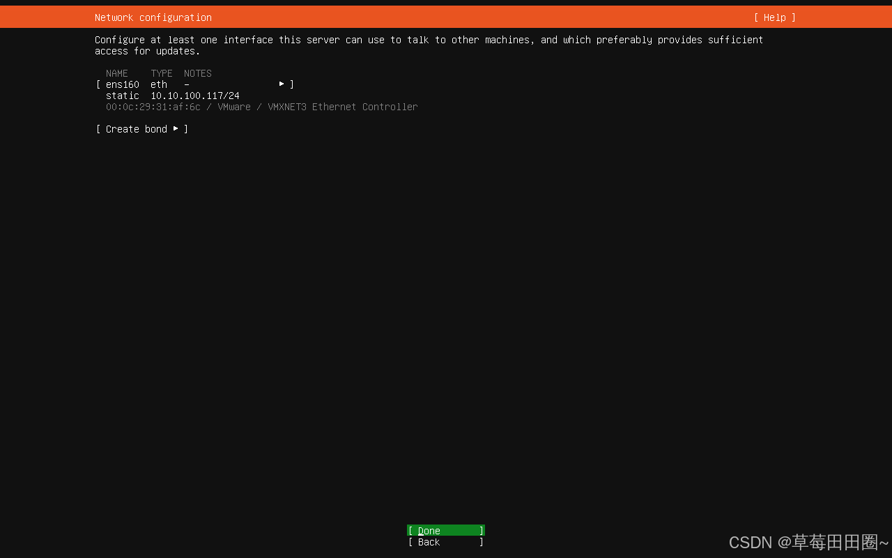 - 1.按Tab键选择网络接口(例如 ens160),然后按「回车」