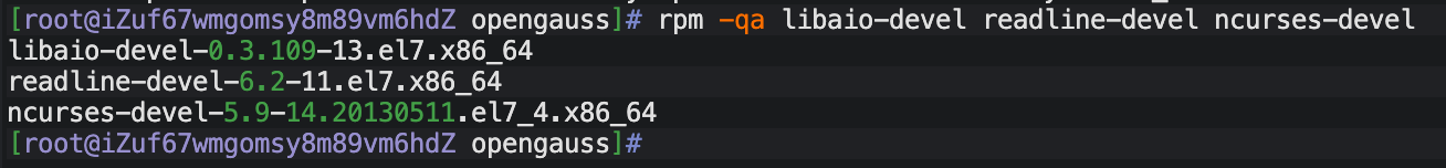 rpm -qa libaio-devel readline-devel ncurses-devel #查询验证安装包