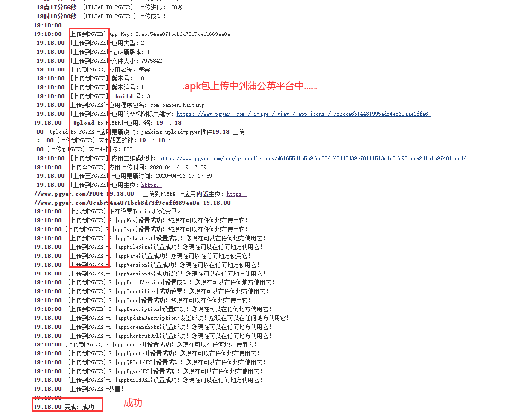 此时我们已经成功将安卓.apk包上传到蒲公英平台了