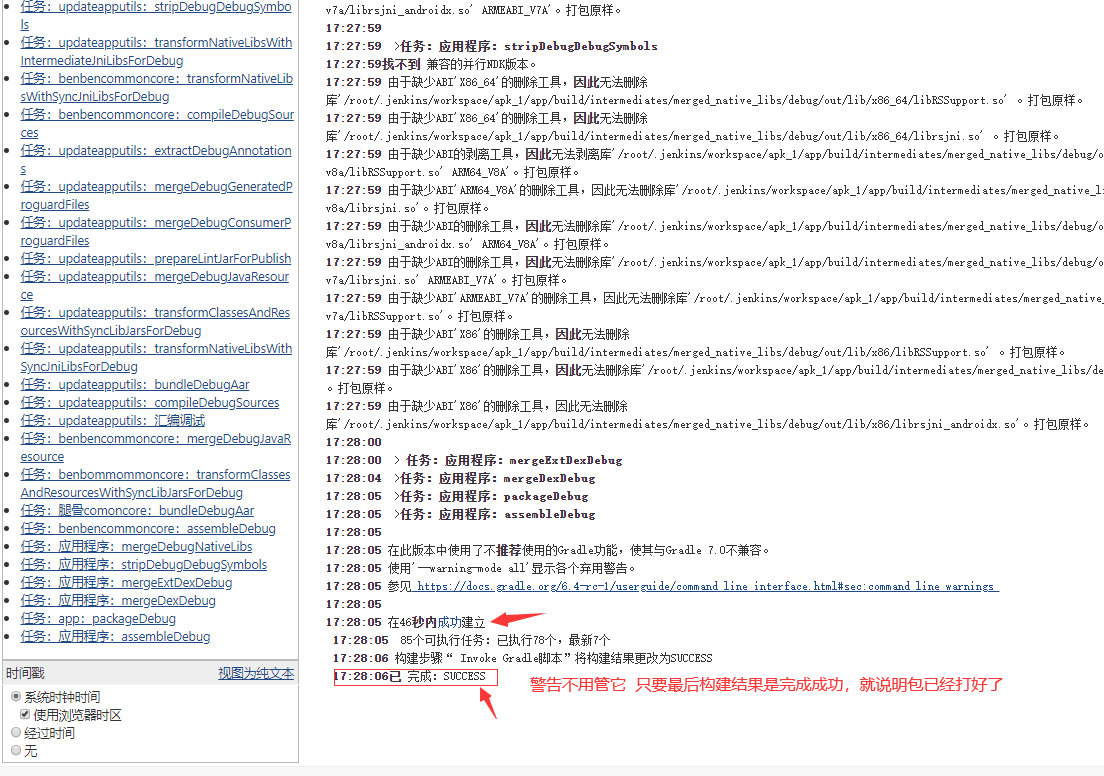 #像老板一样我们只看最后的输出结果成功,就证明我们成功了! 如果构建失败,那里报错了可根据报错信息排查问题,我构建了18次 一点一点解决报错信息 都做到这里多点耐心。