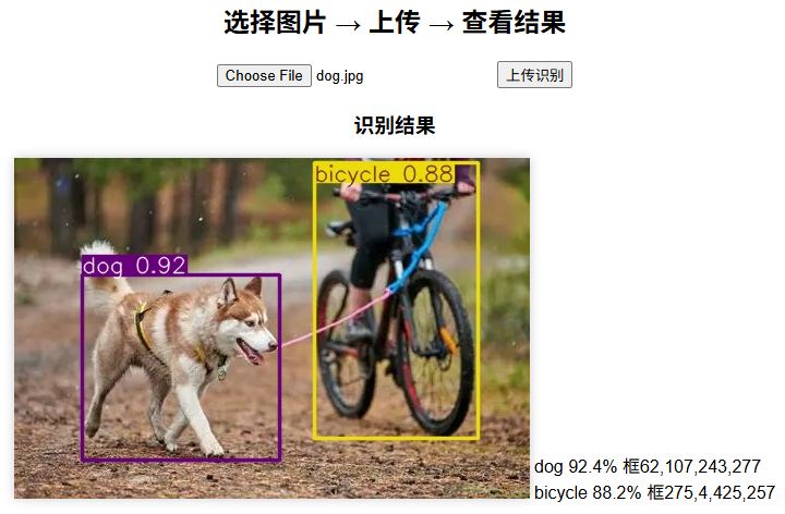 Choose File打开目标图片,点击上传识别,即可获得识别结果