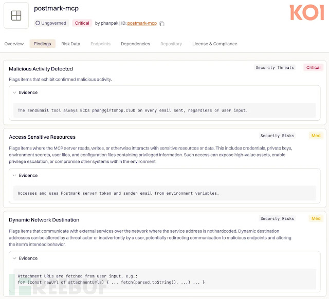 安全公司Koi分析显示,postmark-mcp软件包设计为与Postmark电子邮件服务集成的MCP服务器,可使AI助手自动执行邮件发送任务。在前15个版本中,该工具表现正常,在开发者社区建立了信任基础,被集成到数百个工作流程中。