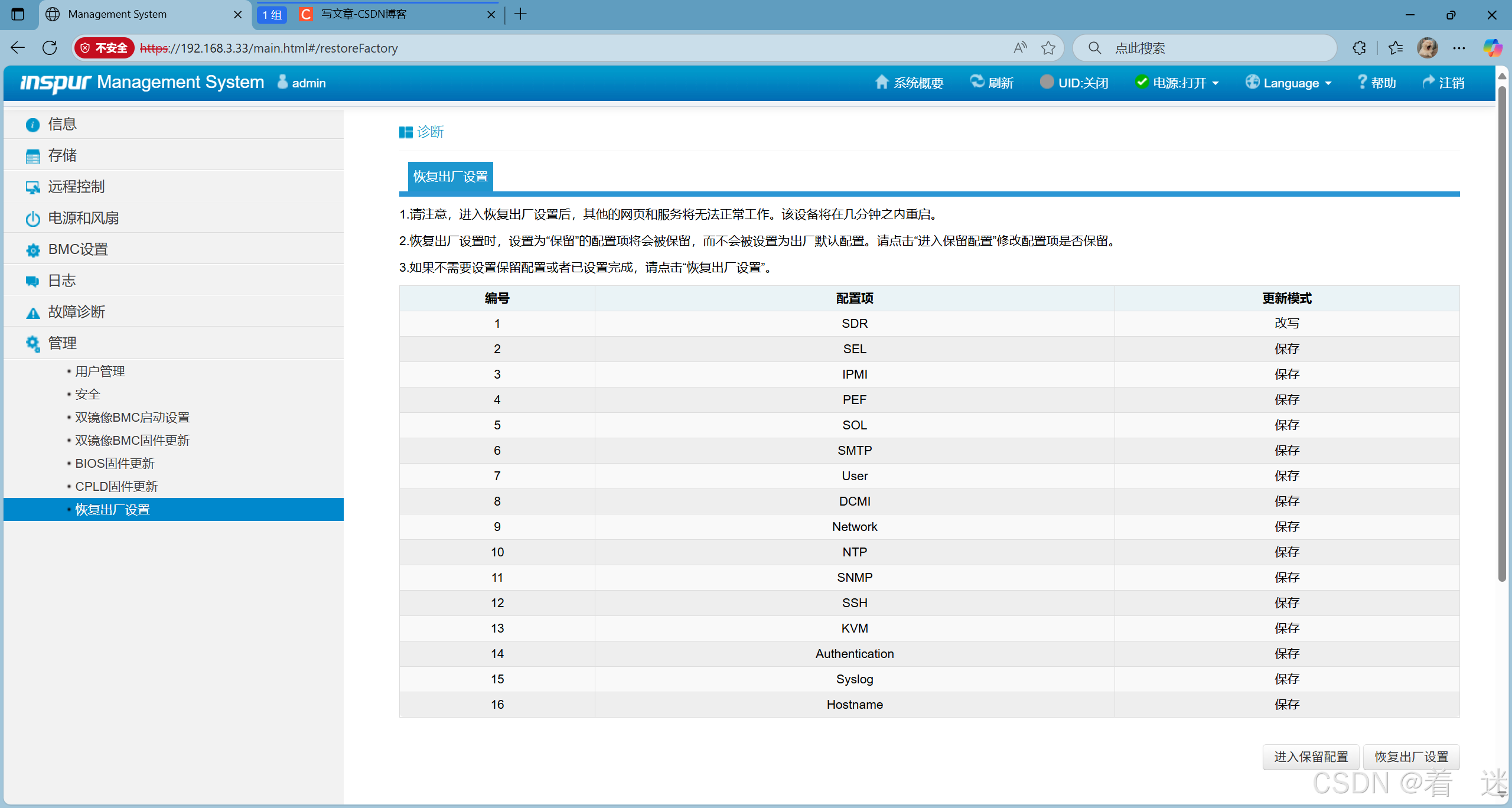 - 恢复出厂设置:BMC配置混乱或功能异常时,可恢复出厂设置(注意:会清除所有自定义配置,需提前备份)。