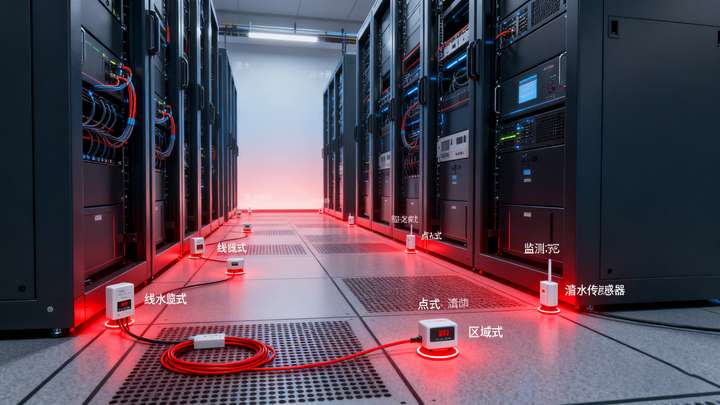 机房内空调冷凝水管、消防管道、UPS 电池组凝露等漏水风险,可能导致服务器短路、数据丢失,需 24 小时不间断监控,且要求精准定位漏水点。