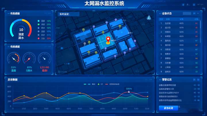 ◦ 远程通知:通过以太网将报警信息推送至监控中心上位机、管理人员手机 APP(支持短信 / 微信推送),并附带漏水区域地图(基于传感器 ID 定位);