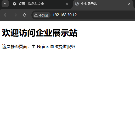 http://192.168.30.12 | Nginx(80 端口) | 静态企业展示站 |