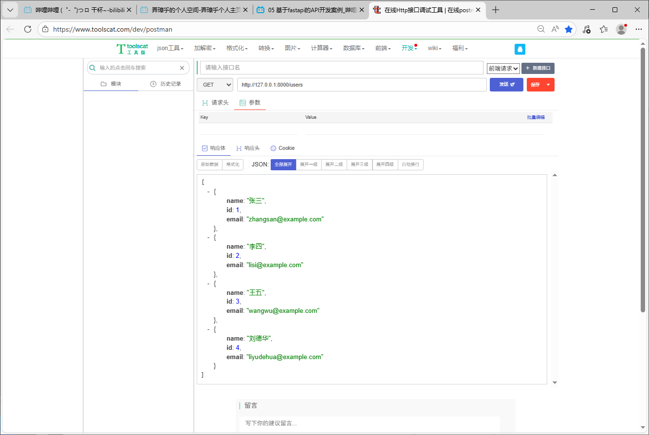 之前手写,现在FastAPI提供API开发文档.