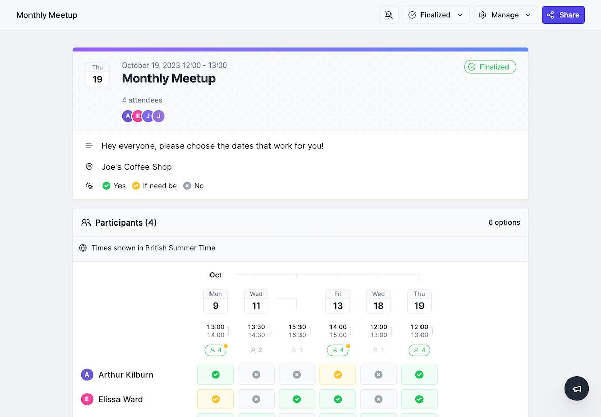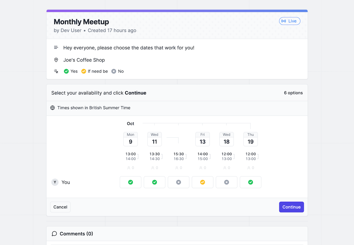 随着参与者陆续投票,Rallly会实时更新投票结果: