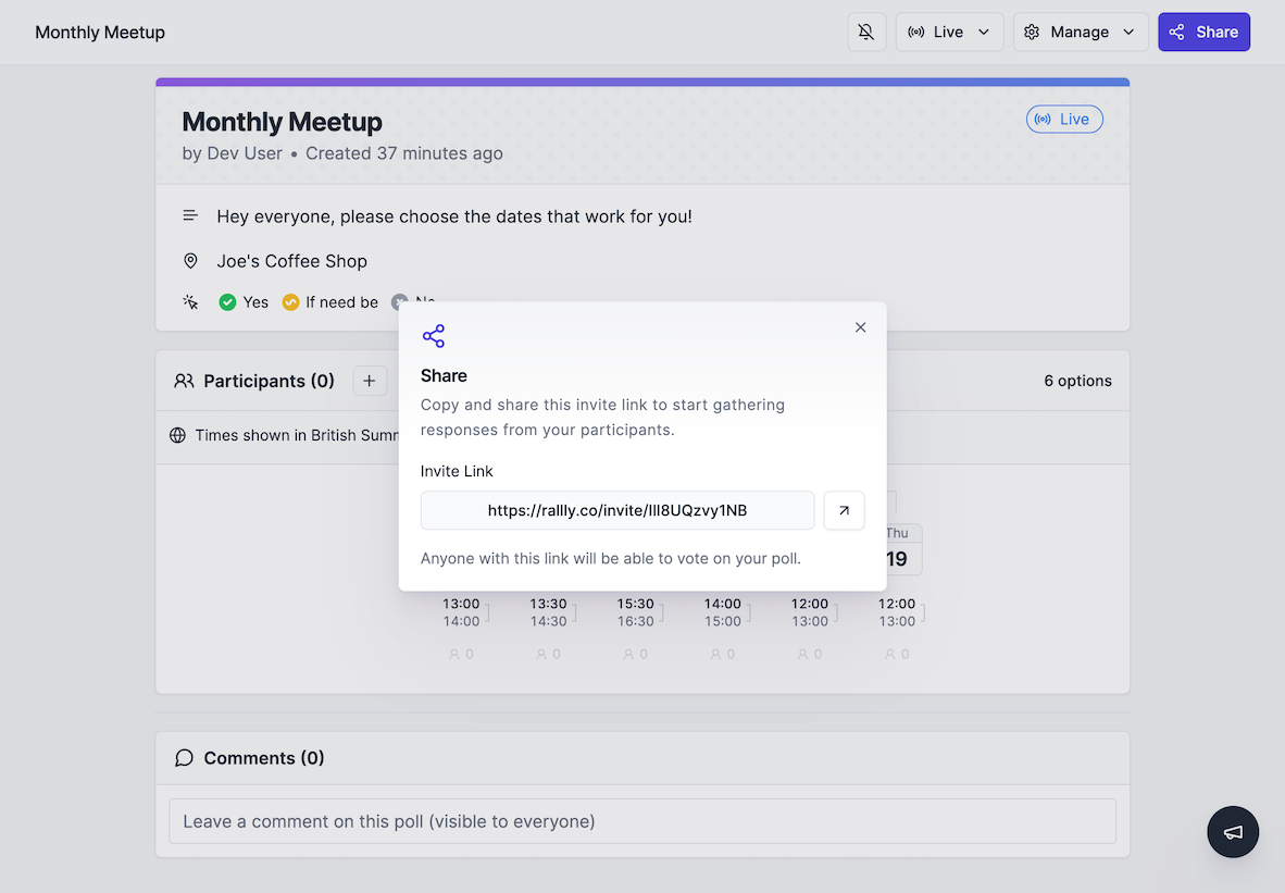 Rallly实时协作功能:参与者投票与评论的完整流程指南