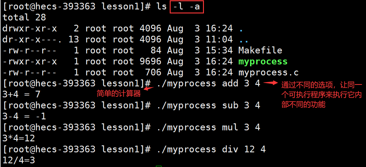 答:选项作为命令行参数传递给指令(程序)的main函数中的argc、argv参数,来完成让同一个指令根据不同的选项执行不同的功能。即:通过不同的选项,让同一个可执行程序来执行它内部不同的功能。