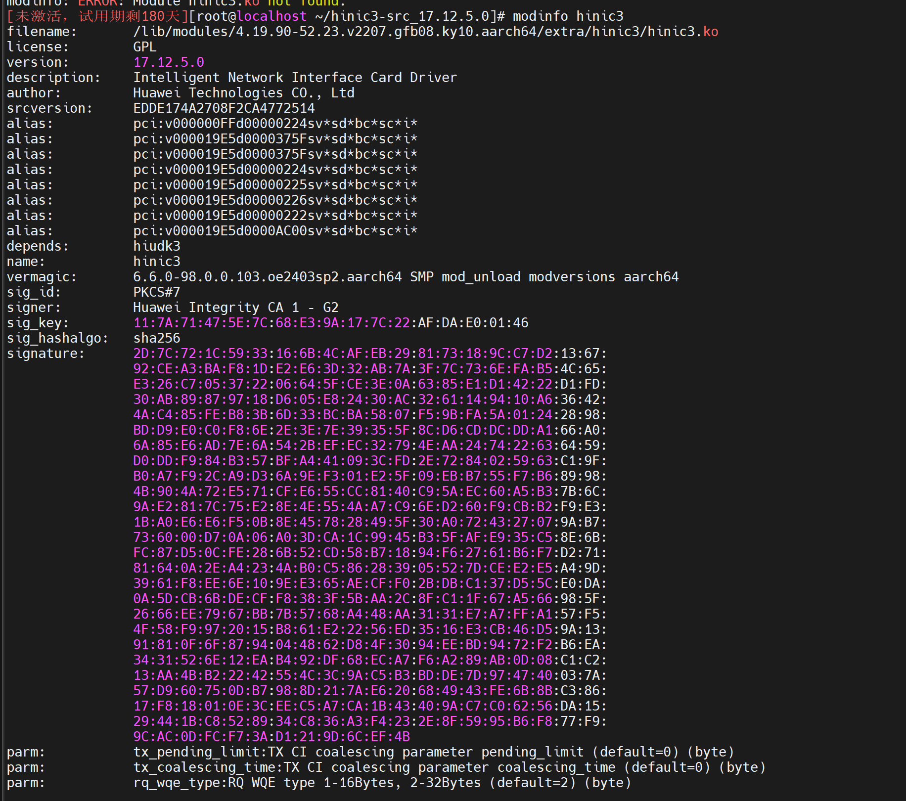 # 步骤3: 验证编译结果 file hinic3.ko # 应该显示:ELF 64-bit LSB relocatable, ARM aarch64, version 1 (SYSV), BuildID[sha1]=...