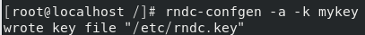 执行rndc-confgen -a -k mykey命令,系统生成一个TSIG密钥文件,并且保存在/etc/rndc.key文件中。