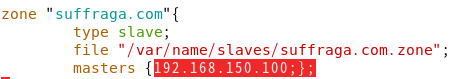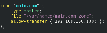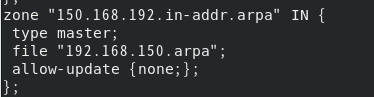 zone "150.168.192.in-addr.arpa" IN { type master; file "192.168.150.arpa"; allow-update {none;}; };