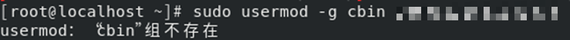 然后,使用sudo usermod -g cbin ###123命令将用户修改为cbin用户组。这里可以看到cbin组不存在。