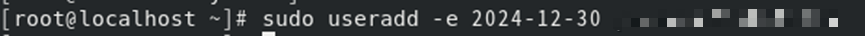 首先这里使用sudo useradd -e 2024-12-30 ###123命令创建以“自己姓名123”的新用户。