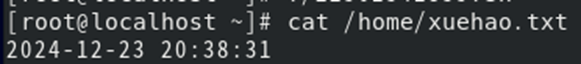 接着使用cat /home/xuehao.txt查看运行结果,发现运行成功。