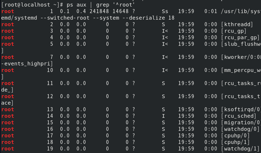 使用ps aux | grep ‘^root’命令,通过管道和grep命令过滤出”root”用户运行的所有进程。