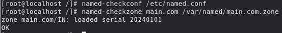 在主服务器中执行vim /var/named/main.com.zone命令,进行配置文件。