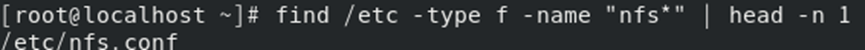 其次再使用命令find /etc -type f -name “nfs” | head -n 1查看所有以”nfs”为开头的文件中的第一个文件。这里可以看到是nfs.conf。