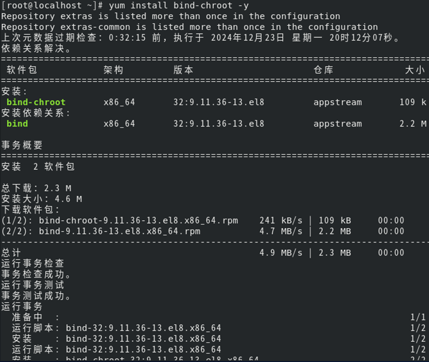 使用yum install bind-chroot-y下载并安装bind服务程序。