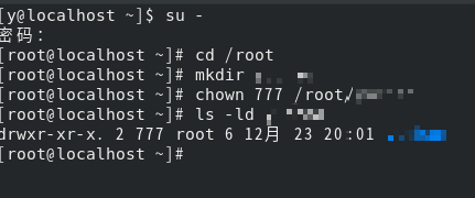 接着使用chown 777 /root/###将该目录的权限修改为所有用户具有读写的权限。