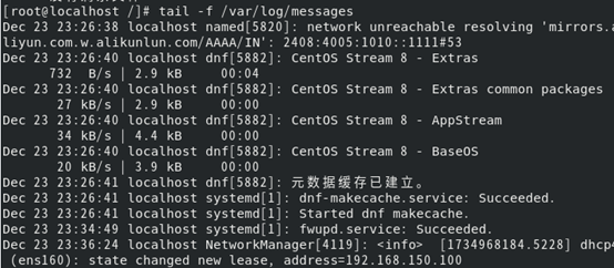 最后tail -f /var/log/messages查询日志是否涉及递归查询或者迭代查询。可以根据第一行得到迭代查询的尝试。由于解析失败,因此DNS服务器尝试通过其他上游服务器来获取答案。但是没有显示与递归查询直接有关的日志,特别是没有看到rd(递归请求)和ra(递归可用)的信息。