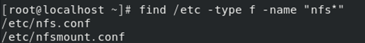首先使用find /etc -type f -name “nfs”查找出所有以”nfs”为开头的文件