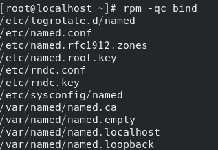 首先通过rpm -qc bind查询bind软件配置文件存在路径。可以看到主配置文件在/etc/logrotate.d/named,区域配置文件在/etc/named.rfc1912.zones,区域数据配置文件在/var/named/named.localhost
